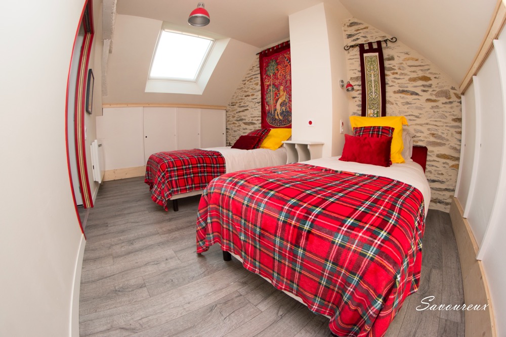 Aménagée de plain-pied, la bâtisse comprend un espace cuisine ouvert sur le séjour, 2 chambres avec chacune sa salle d’eau (douche à l’italienne et un WC), ainsi qu’un WC séparé. La terrasse donne accès à un jardin privatif. Ce gîte est totalement accessible PMR.
